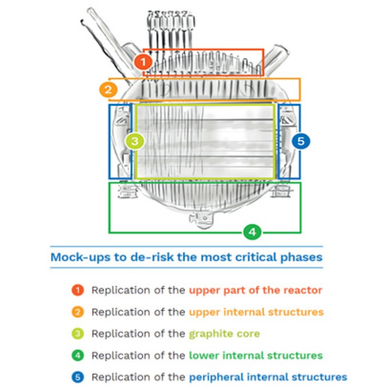 - Development of remotely operated tools to break up complex, large-scaleconcrete and metal structures (including opening-up of the bioshield) andtools to extract activated graphite bricks and other structures Ongoing
